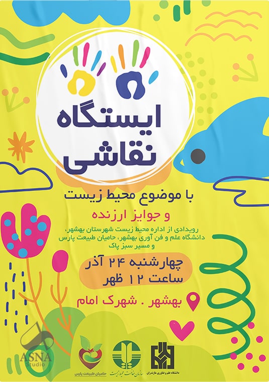 پوستر مسابقه ایستگاه نقاشی کودکان و نوجوانان به سفارش انجمن حمایت از محیط زیست مازندارن طراحی شده است. در این پوستر از نقاشی هایی با سبک کودکانه با رنگهای شاد و زنده استفاده شده تا توجه مخاطبان اصلی این رویداد که کودکان و نوجوانان هستند را جلب کند. رنگهای استفاده شده در این طرح الهام گرفته از بیشترین رنگهایی است که غالبا کودکان در نقاشی هایشان استفاده می کنند. همچنین تمام عناصر از محیط طبیعی گرفته شده تا تم رویداد که محیط زیست است را نشان دهد.