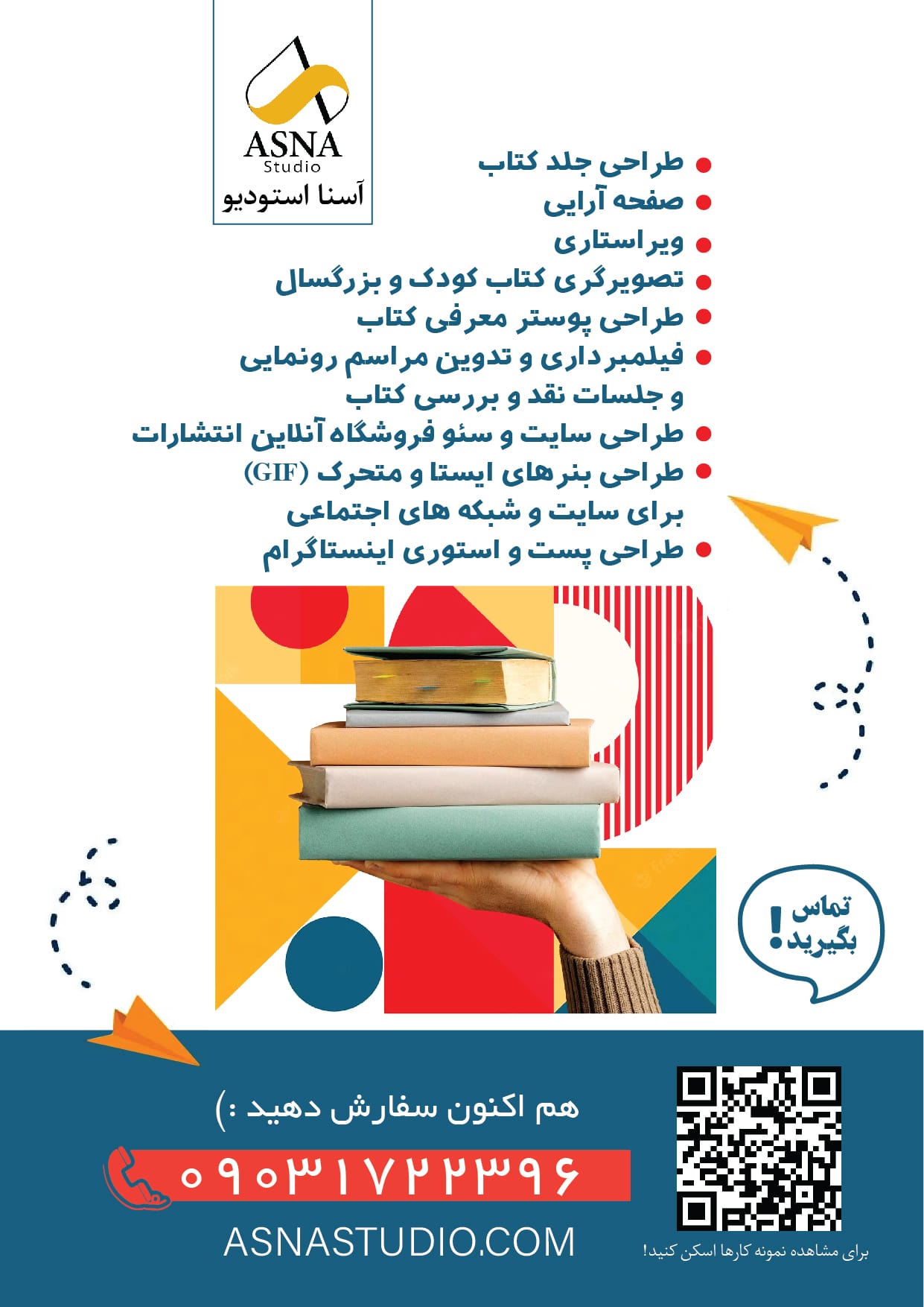 عنوان پروژه: طراحی پوستر آسنا استودیو جهت شرکت در نمایشگاه بین المللی کتاب 1402